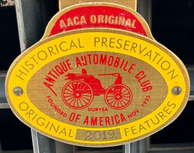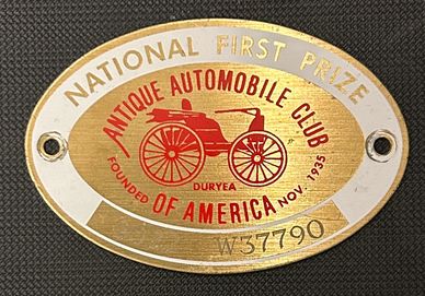 This is a photo of the Junior grill badge to be mounted on your car ,after competing and winning a first place National award you'll receive this Badge with the year of the award and your car AACA assigned Number engraved in it